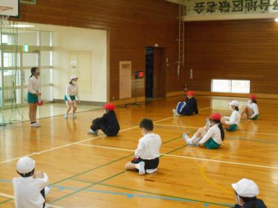 今日は、新任の先生方も一緒に身体を動かしていました。長谷川先生、林先生のパワーに子どもたち