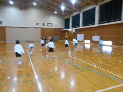 はぎのっ子は朝から学年関係なく、体育館で鬼ごっこやドッジボールをしています。
