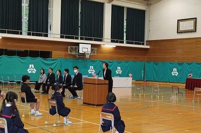 6年生がいない初めての集会でしたが、5年生を中心に全学年の児童がすばらしい姿勢で校長先生のお話を聞いていました。