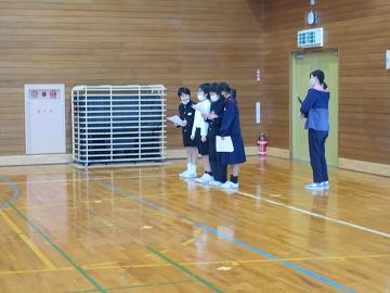2限に5年生が体育館で6年生を送る会の司会進行練習をしていました。