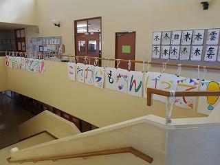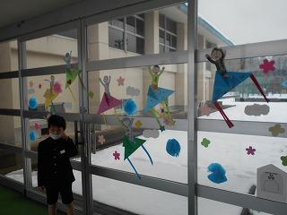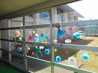 全校合唱の「カイト」に合わせて作った渡り廊下の1・2年生のカイトの飾りには、6年生を乗せました。じっくり見てみてくださいね。