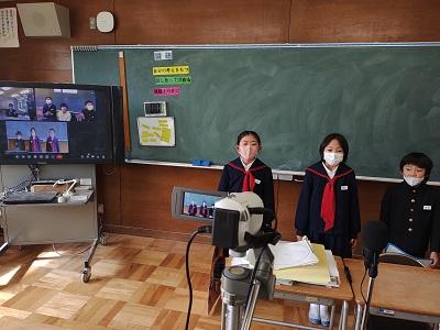 笠野小学校・刈安小学校との三校交流のオンライン授業が行われました。