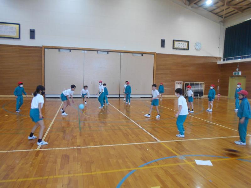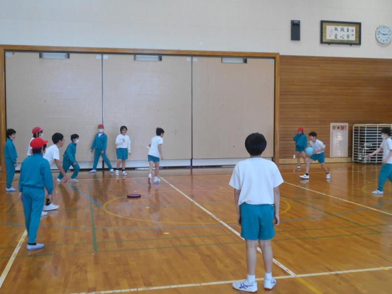 内容は、ドッジボールとドッジビーをまぜたゲームを行いました。