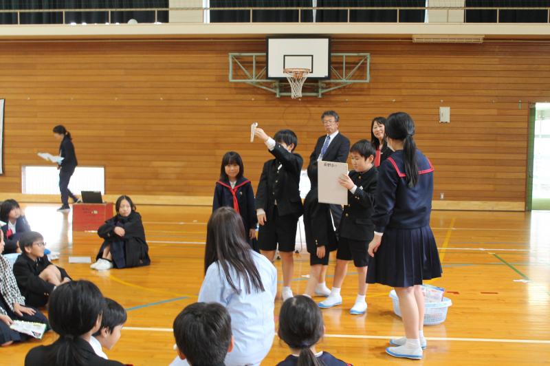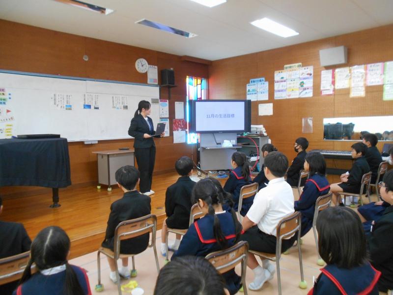 生活目標のふりかえりは2年生でした。2年生は10月の生活目標「身の周りの整とんをしよう」をふり返り、体操服やロッカー、お道具箱をきれいに整とんするコツを教えてくれました。これからも続けていきたいですね。