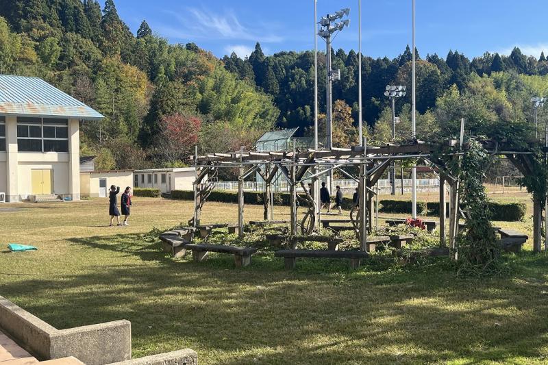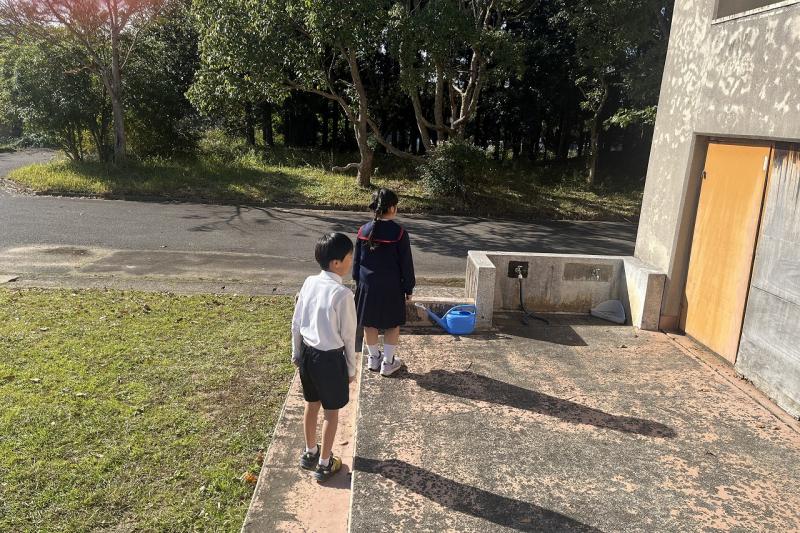 「中庭に行くぞ!」など運動場や中庭から元気な声が