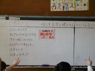 3時間目に栄養教諭より<はしを上手に使えるようになるには>の授業がありました。