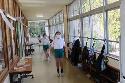 ↑『なわとび運動、はじまるよ~!』と案内してくれる6年生。