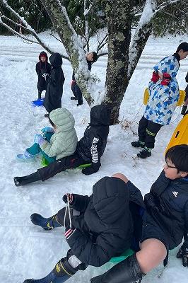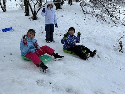 みんなでそりを持ちよって、楽しく滑っていました。