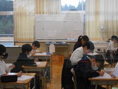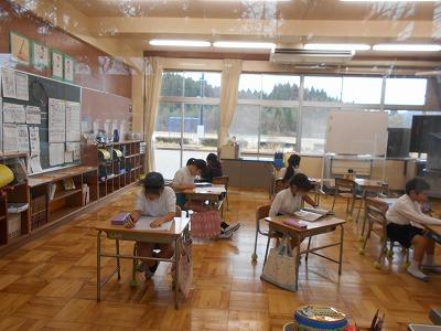 1,2限に、全校児童が国語と算数の実力テストに挑戦しました。
