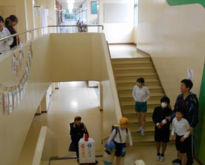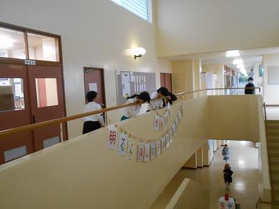 「階段のところに、飾ったら、みんなの目にとまるね」と、5年生が考えて、飾ってくれました。