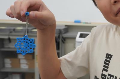 自分で描いたデザインをCADソフトで立体化し、3Dプリンターでキーホルダーを制作。