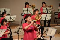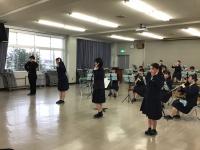 楽器体験の最後に、吹奏楽部2,3年生と、新1年生の楽器経験者の皆さんで、「アニーローリー」を演奏しました。楽器を持たない一年生も、指揮者(手拍子)で参加し、すごく温かい演奏に包まれて、幸せな気分になりました。また遊びに来てね~!!