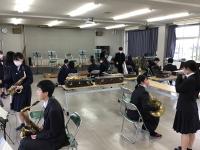5月に入って緊急事態宣言が発出される中、「誰も感染しない、させない!」を常に念頭に置きながら練習してきました。入室時の手の消毒や手洗い、練習中や合奏中のディスタンス、返事は小さくかうなずくだけ、練習直後の「ありがとうございました!」の挨拶も、マスクを素早く付けて言う、等々、細かく予防策を講じながら、練習を重ねて迎えた本番。