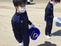 3年生3名,2年生2名。計5名が青空の広がる千里浜海岸の清掃ボランティアに参加しました。