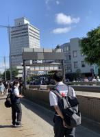 いよいよ街頭募金に出発。本校JRC部は,金沢駅での募金活動を担当しました。