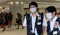 金沢駅もてなしドームに集合。赤十字マークのベストに身を包み