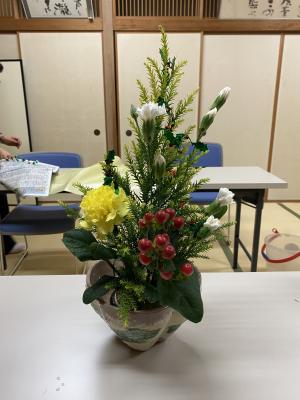 白いカーネーションが雪のようで可愛く仕上がり、とても楽しいお稽古でした。