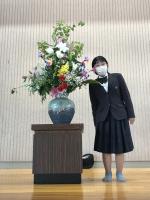 式後は職員玄関に置いています。来校者の目を楽しませてくれたらいいなと思い