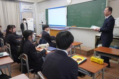 3年生には「ビッグピクチャーを描こう。共通テストを控えた今は目の前のことしか見えなくなりがちだが、ここが将来に繋がる踏ん張り時のプロセスだと捉え、気持ちに余裕を持って今のこと、将来のことを考えて頑張ってください。」と述べられました。