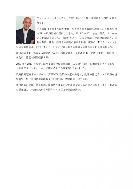 また、10/31(木)9:00には、駐日欧州連合(EU)大使 ジャン=エリック・パケ氏が来校され、2年生を対象に、豊富な国際経験で得られた知見についてお話しいただきます。