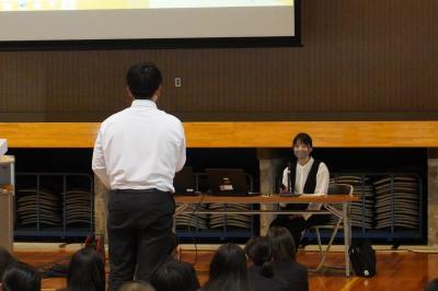「薬物は自分だけでなく、家族の人生まで破壊します。自分は大丈夫と過信しないでほしい。」とのお話に、生徒は頷きながら聞いていました。