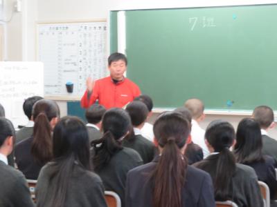 11月14日(木)7限目、羽咋警察署生活安全課の山田さんと石川県教育委員会学校指導課の山下さんをお招きし、2年生対象に非行防止教室が行われました。