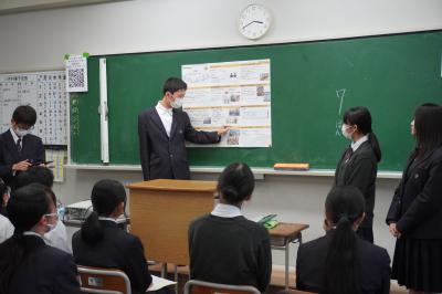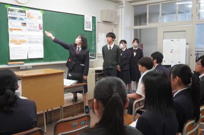 この日は、これまでの探究活動の成果を1年生や国立能登青少年交流の家の講師の方を前に発表し、質問や評価を受ける機会としました。