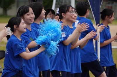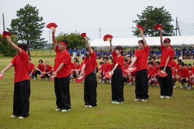 【5,応援合戦】評価の観点は、声量・工夫・ダイナミクス・態度。息の合った見ごたえあるダンスで、4組連合が最優秀賞に輝きました。(青いユニフォーム)
