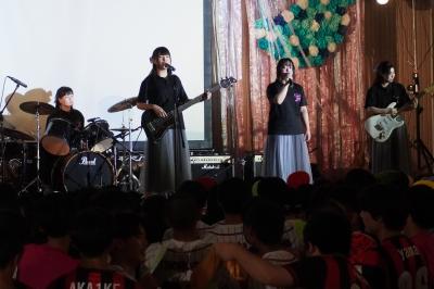 先陣をきるのは軽音楽部。「Lucky Clover」と「Panica」のバンドライブ。夏フェスさながらです。