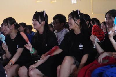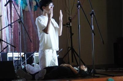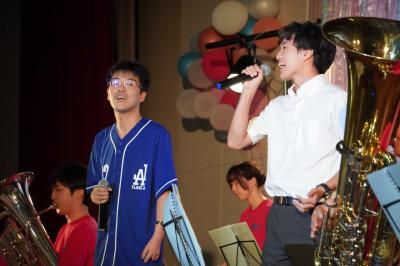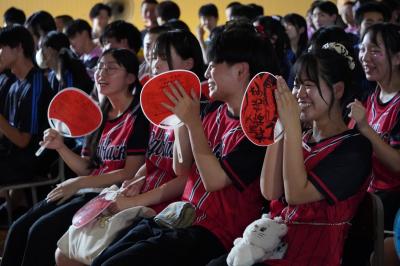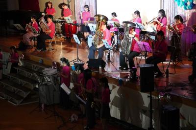 吹奏楽部のスペシャルステージ。先生の歌声に生徒から思わず歓声が。