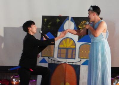 体育館では腕相撲大会、カラオケ大会、14Hによるコメディ劇場「白雪姫」が行われました。