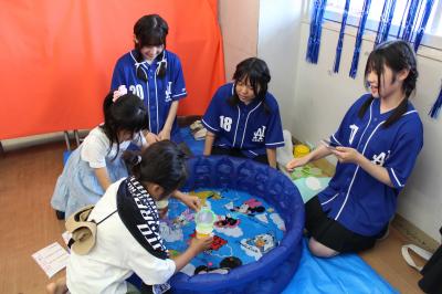 教室では模擬店、縁日、お化け屋敷、スタンプラリー等が催され活気十分。