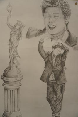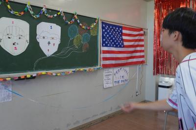 担任・副担任の似顔絵コンクール。さて、下記の似顔絵はどの先生か分かるかな?
