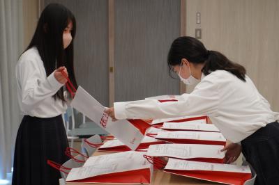 9月13日(金)お昼休みに、杜の鐘ホールで新オプション制服の受け渡しが行われました。
