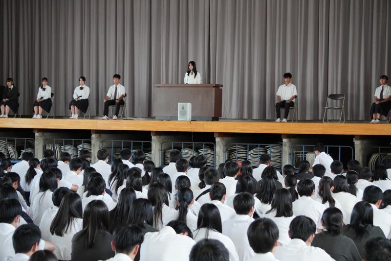 緊張した面持ちでステージに登壇した立候補者7名でしたが、演説からは「後期の学校生活はメリハリを意識した活動的で楽しいものにしたい」という素直で熱い思いが全員から伝わってきました。