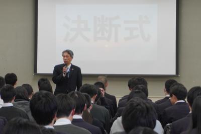 中川校長は、式辞の中で「本校は❝ 文武+探究 ❞を掲げています。学びの中で得意を伸ばし、将来の挑戦や選択の糧となる自分の武器を身に付けてください。3年生に直面する大きな挑戦は大学受験ですが、乗り越えるためには運を味方につけることも大切です。その運は、日々、友人や家族を思いやり、周囲を大切にする姿勢から生まれます。一日一日を丁寧に過ごし、自分を磨き続けてください。」と述べました。