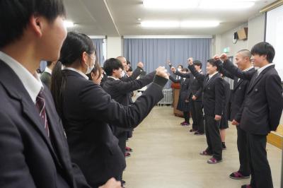 の力強い掛け声に、全員が手を高く掲げそれに応えました。