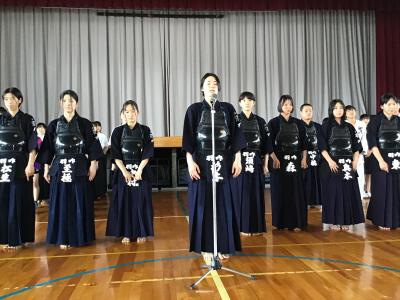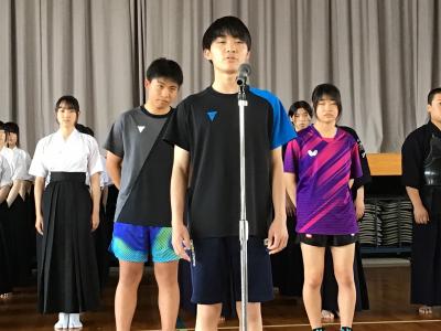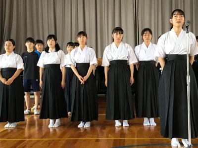 最後に選手を代表して、なぎなた部 橋本和香さんから「これまで練習してきたことに自信を持ち、熱心に指導してくださる顧問の先生や支えてくれる家族に感謝し、仲間と共に正々堂々と戦ってきます。」と決意表明がありました。