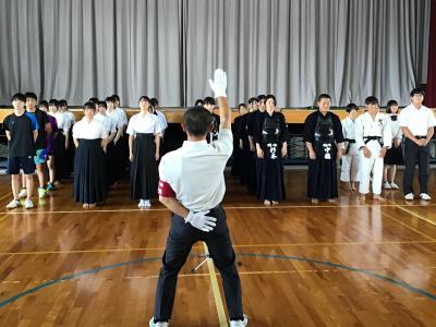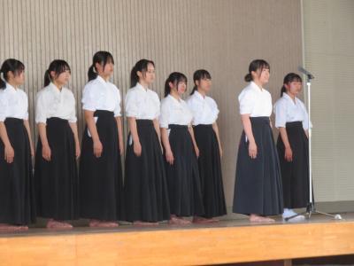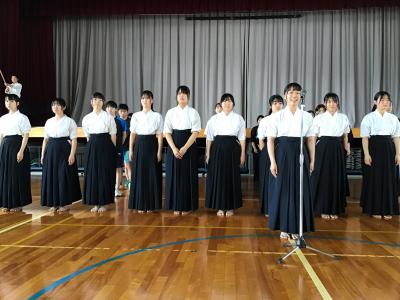 7月19日(金)、第一体育館にて全国大会に出場する弓道・なぎなた部の壮行式が行われました。