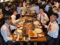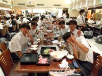 夕食はジンギスカン食べ放題で、羊肉が初めの生徒が多くいましたが、口に合ったようで、「おいしい!」という声が聞こえました。