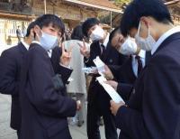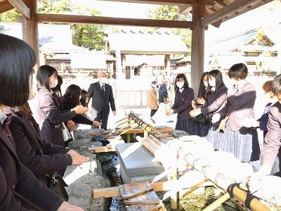 縁結び、学業成就、家内安全などを祈願し、おみくじを引いたり、お守りを買ったりしました。お家の方のために健康長寿のお守りを購入した生徒もいました。