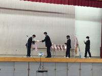 12月9日(木)、令和3年度2学期の表彰伝達式が行われました。今回はZoomを使って、体育館での表彰式の様子を各教室にライブ配信しました。