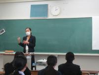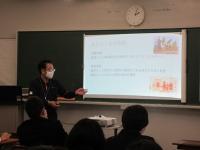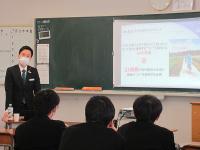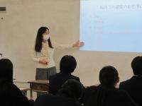 各クラス代表、医志未来塾代表、教志未来塾代表の13名が、課題研究の内容や進捗状況を発表し、学年全体で共有しました。その後探究アドバイザーである金沢大学教授田邊浩氏から講評と「今後の研究の進め方」等について助言指導をして頂きました。今後の研究内容の修正や改善に役立つ有意義な時間となりました。