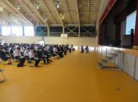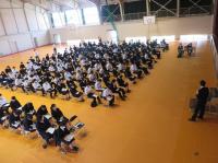 10月22日(木)7限目に本校グラウンドにおいて、『JAスタント 自転車交通安全教室』を行いました。スタントマンが危険な自転車走行や歩行による交通事故を再現した実演を行い、交通事故の危険性を疑似体験しました。その後警察署の方が、「自転車乗車時の注意点として、ヘルメット・反射板・二重ロックを守る。さらには、横断歩道等ではアイコンタクトが大事。これらを守り、安全で安心した生活を送ってほしい。」と話をされました。最後に生徒会長の2年生舛岡君が「危険な自転車の乗り方をせず、しっかり交通ルールを守っていきたい。」と挨拶をしました。自転車の交通ルール遵守、交通マナーの必要性を再認識した貴重な体験となりました。