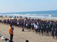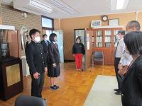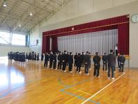 校長が、「誇りとプライドを持ち、記録更新となるようベストを尽くして頑張ってきてほしい」と激励の言葉を話されました。その後、選手代表として2年生の清水君が、「日頃の練習成果を出し頑張ってきたい」と抱負を述べました。