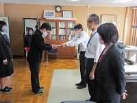 福井県営陸上競技場〈10月23日(金)~24日(土)〉で開催される北信越高等学校新人陸上競技大会に出場する陸上部生徒2名の激励会を、校長室で行いました。