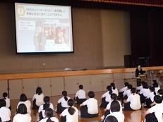 1年生を対象に6月18日(木)、スマホ教室を行いました。NTTドコモの方が来られ、ネットの危険性やネットトラブルの事例からその対処法など、安全なスマホの使い方を学びました。