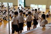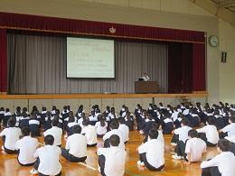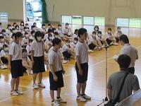 そのあと、諸連絡として生徒指導課主任より「教室で配付される夏季休業中の生活心得をしっかりと読み、命と心を大切に夏休みを過ごしてほしい。」と、話がありました。
