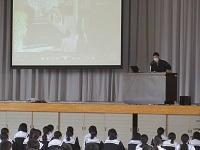 2年生を対象に7月9日(木)、石川県教育委員会から指導主事の竹藤景介氏、羽咋警察署から生活安全課生活安全係長の吉村淳氏を招き、非行防止教室を行いました。社会のルールや自分の行動に責任を持つことなどの規範意識について学びました。また、犯罪等にまきこまれないような日頃からの心得・態度についても学びました。