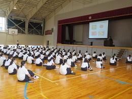 6月11日(木)第1体育館で1年生を対象に羽咋警察署生活安全刑事課生活安全係長の吉野淳さんを招き、「薬物乱用および犯罪の防止について」をテーマに薬物乱用防止教室を行いました。近年身近に迫ってきている薬物の危険性や薬物乱用が人体にもたらす害について話をききました。正しい情報や知識を知り、絶対に誘惑に負けない強い心と態度を身につける大切さを学びました。